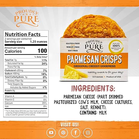Proudly Pure Parmesan Cheese Crisps Keto Snacks Zero Carb Crunchy Delicious Healthy 100 Natural Aged Cheesy Parm Chips Wheat Soy Gluten Free